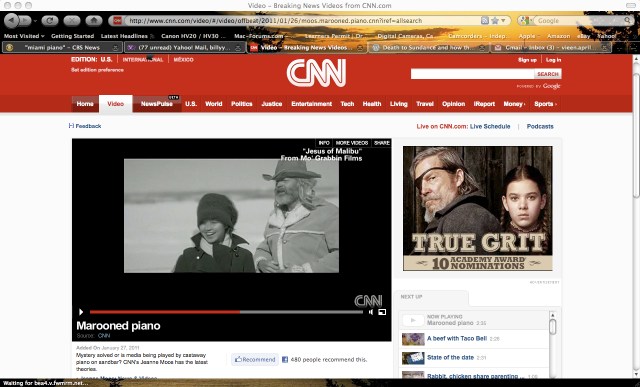 “William and Anais Yeager are two brilliant filmmakers that effectively produced one of the best publicity stunts ever, winning millions of dollars worth of free publicity from CNN and others. CNN produced a 2.5-minute report that might have cost the Yeagers up to $100,000 if they had produced it themselves, complete with helicopter aerial shots. The CNN report even contains a mention of their independent film called “Jesus of Malibu: The Revolution for the Freedom of the Mind.” That piano on a sandbar will now forever be an archetypal symbol for the Yeagers’ movie and top publicity stunts of all time.”